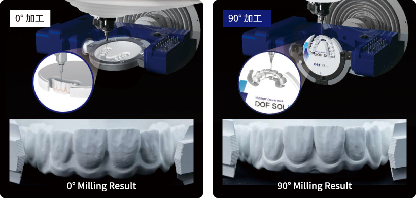 CRAFT2とCRAFT Plusは90°加工時、Cタイプジグを使用しブロックを垂直に立てた状態で、歯牙の外側から精密に加工します。
