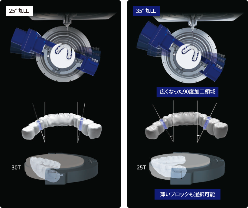 スクリューホールの端まで到達する35°加工により既存では具現化が難しかったディテールまで繊細できる可能性が高まります。