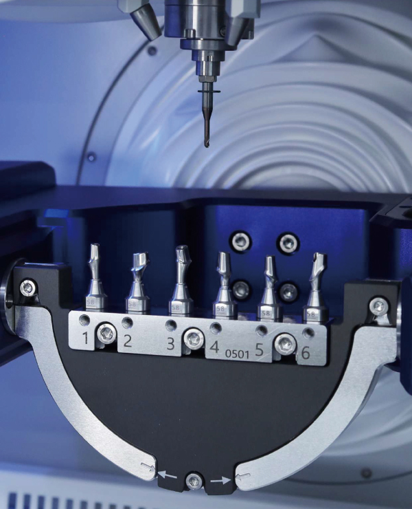 5軸リバース加工方式により、アバットメントと上部補綴物を同時に制作することで、ワンステップを加工を実現しました。