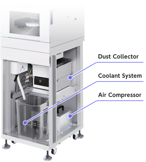 ウォータータンクとポンプで構成されており、WET加工を可能にしています。(ガラスセラミック、チタン加工など)